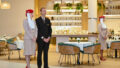嬉しそうに乗込む搭乗客には、客室乗務員から記念品が贈られます。