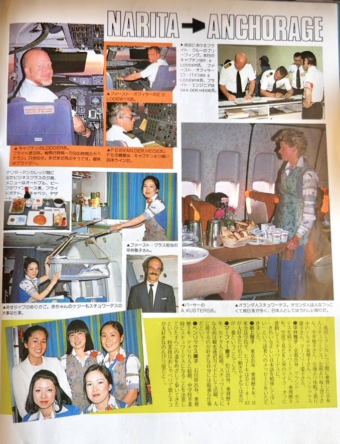 そして、日本の航空ファンとの特別な繋がりを示す個人的なエピソードとして、筆者は1981年8月号の『月刊エアライン』創刊10号にて、初の搭乗取材記事として「KLMで行くアムステルダム」を11ページにわたり寄稿しました。この記事では、ボーイング747-200によるアンカレッジ経由の搭乗記を中心に、搭乗したKLM便のスチュワーデスとのアムステルダム散策や訓練所の様子などを詳細に紹介しています。