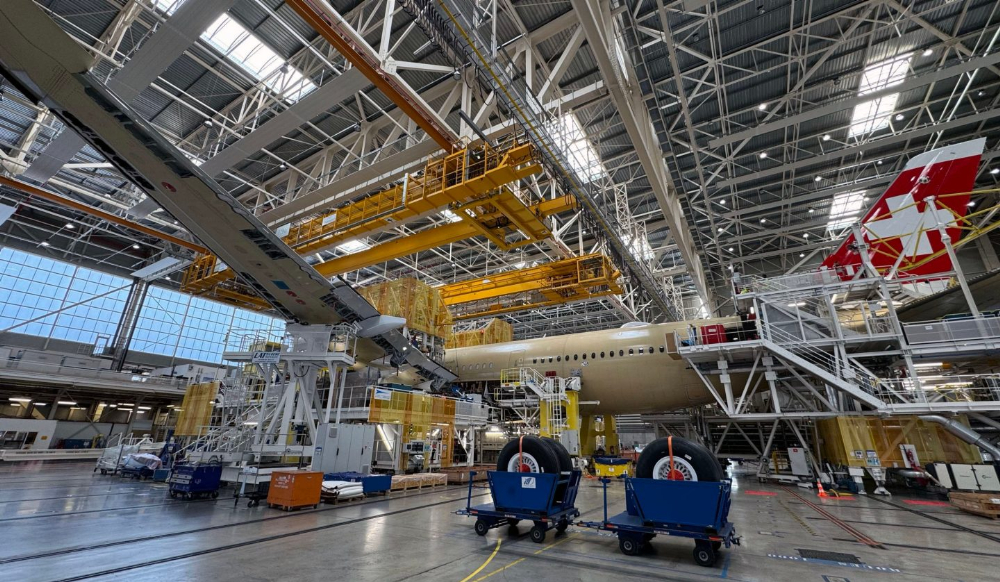 エアバスで製造中のスイスインターナショナルエアライン向けのA350-900 ©SWISS
