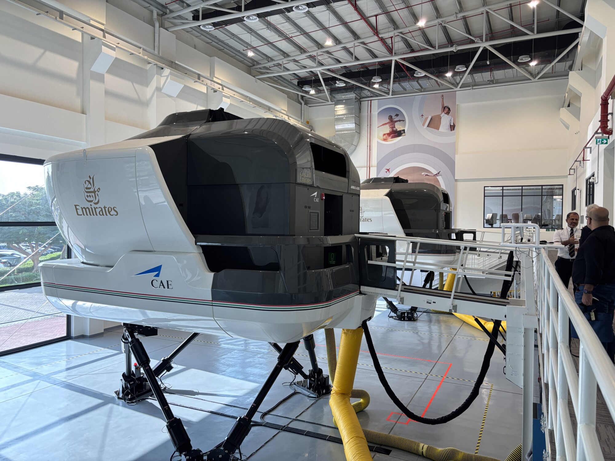 一方、ドバイ国際空港(DXB)近隣に位置するエミレーツ・フライト・トレーニング・アカデミーでは、招待を受けた限定のメディアのみに興味深い施設が公開されました。それが、エアバスA350‐900型機に対応したCAE社製の7000XRフライトシミュレーターです。