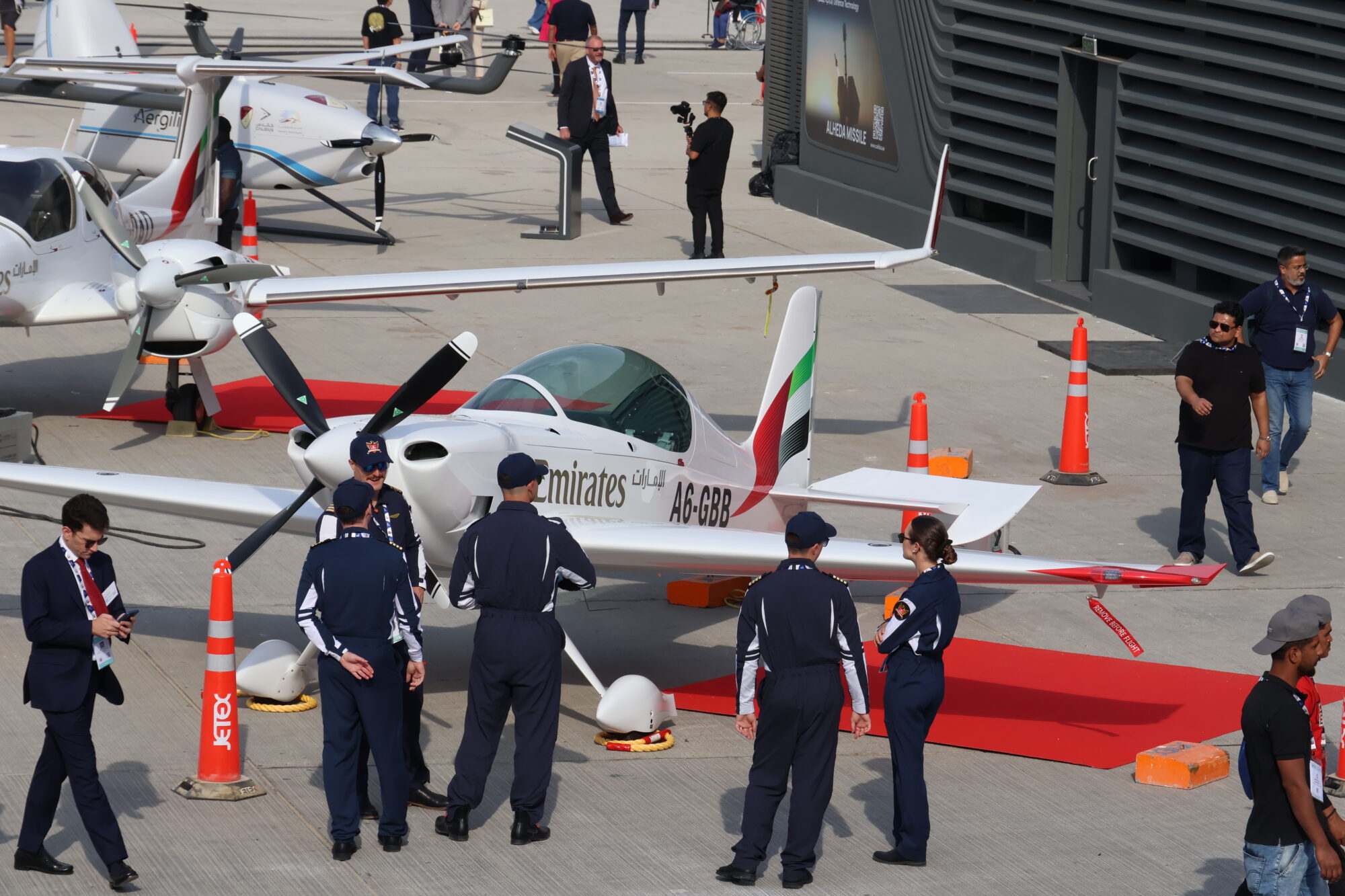 ドバイエショー2025において、エミレーツ航空は定期便に就航している旅客機3機に加え、将来のフライトを担うパイロットを育成するための訓練機も地上展示し、その存在感を示しました。
