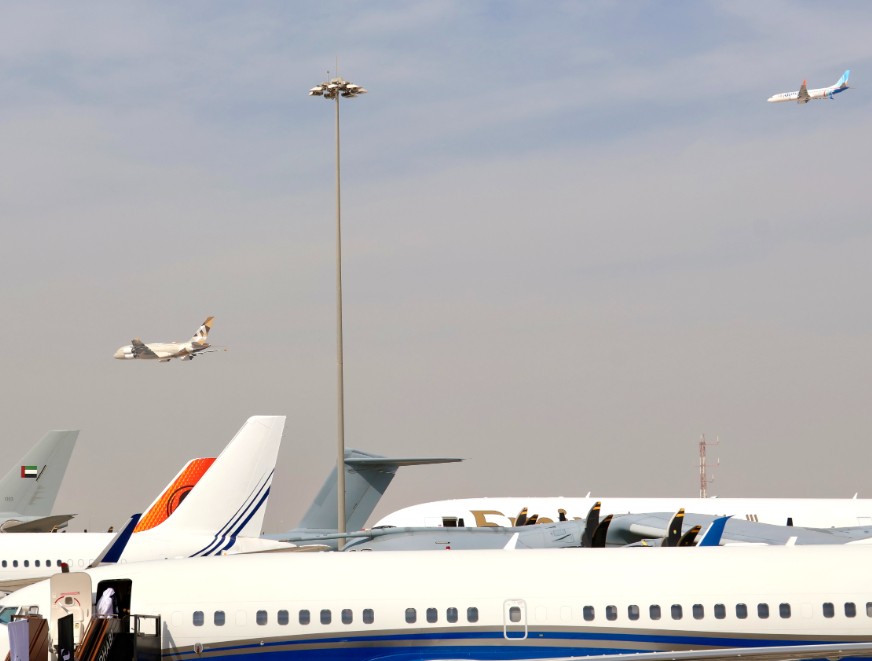 エミレーツ航空に続き、アブダビを拠点とするエティハド航空のA380と、ドバイを拠点とするフライドバイのボーイング737-Maxが、高度を変えて編隊を組み、UAEの航空ハブとしての存在感を印象付けました。