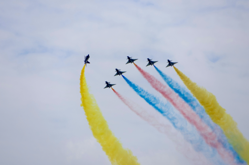 アクロバット飛行では、中国人民解放軍の「八一飛行隊」が、青、赤、黄の鮮やかなスモークをたなびかせ、緻密なフォーメーションで空を彩りました。さらに、オーストラリア空軍のF35による迫力あるフライトが披露され、最新鋭ステルス戦闘機の圧倒的な機動性に会場が沸きました。