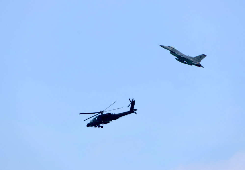 一方、軍用機のパフォーマンスは観客を圧倒する内容でした。地元シンガポール空軍は、F16戦闘機とAH-64Dアパッチ・ロングボウによる、固定翼機と回転翼機の息の合った競演を披露。