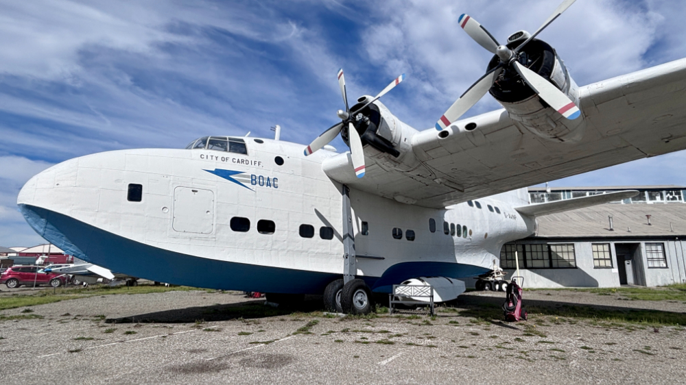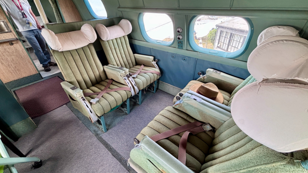 最初に足を踏み入れたのは、かつて英国海外航空(BOAC)で活躍した飛行艇、ショート・ソレント「シティ・オブ・カーディフ(G-AKNP)」です。現代の機能性を追求した機内とは対照的に、その内部はまるで高級ホテルのラウンジのような趣がありました。趣のあるキャビン、ゆったりとした座席配置、そして飛行艇特有の重厚な造りは、当時の富裕層が楽しんだ「空のクルーズ」の華やかさを色濃く残しています。