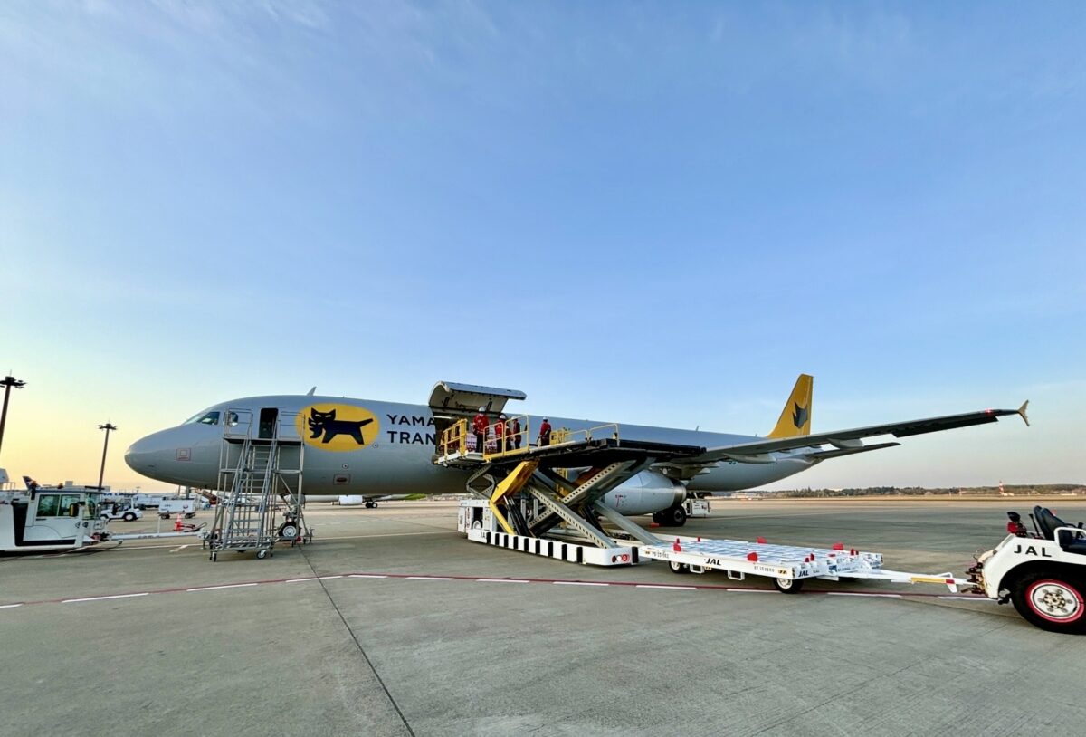 成田空港で貨物搭載するヤマト運輸のフレイターA321P2F