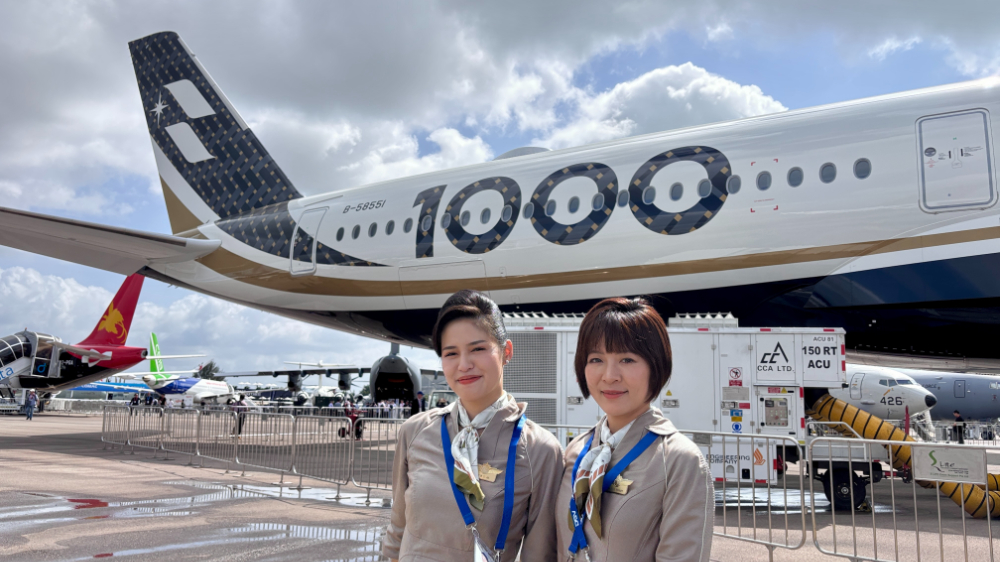 シンガポールエアショーでのスターラックス航空A350-1000と客室乗務員